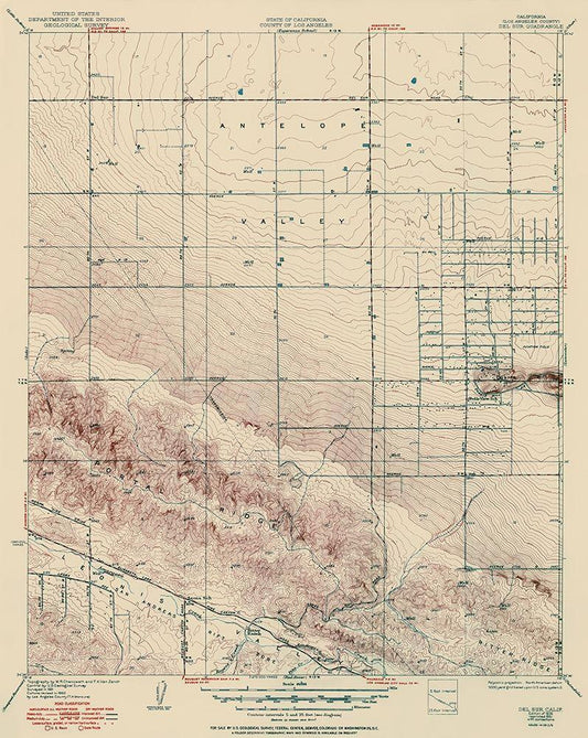 Del Sur California Quad - USGS 1937 White Modern Wood Framed Art Print with Double Matting by USGS