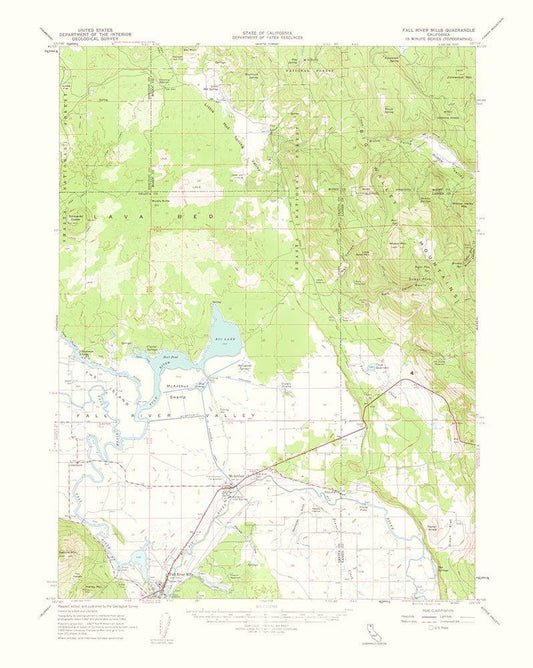 Fall River Mills California Quad - USGS 1963 White Modern Wood Framed Art Print with Double Matting by USGS