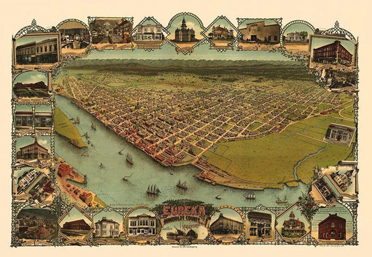 Eureka California - Britton 1902 White Modern Wood Framed Art Print with Double Matting by Britton