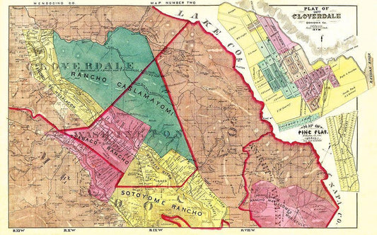 Plat of Cloverdale California - Thompson 1877 White Modern Wood Framed Art Print with Double Matting by Thompson