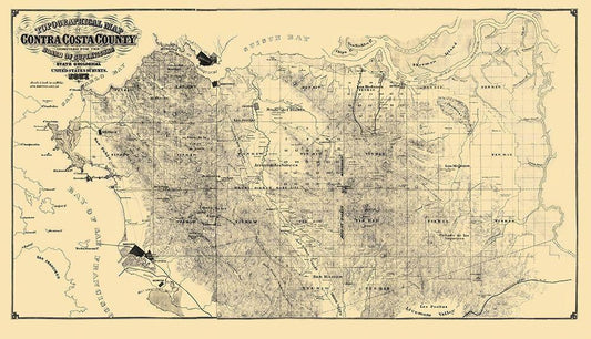 Contra Costa California - USGS 1871 White Modern Wood Framed Art Print with Double Matting by USGS
