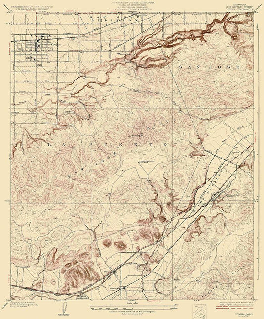 Covina California Quad - USGS 1927 White Modern Wood Framed Art Print with Double Matting by USGS