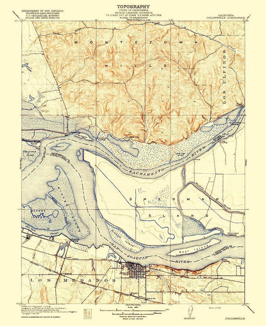 Collinsville California Quad - USGS 1918 White Modern Wood Framed Art Print with Double Matting by USGS