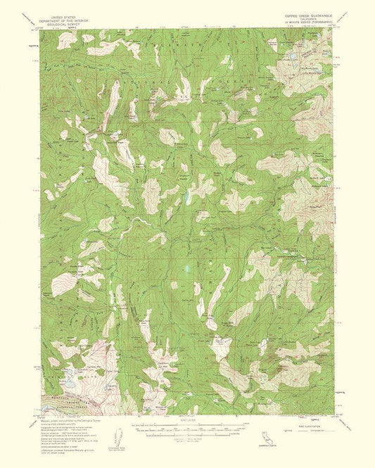 Coffee Creek California Quad - USGS 1960 White Modern Wood Framed Art Print with Double Matting by USGS