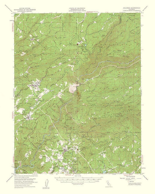 Columbia California Quad - USGS 1961 White Modern Wood Framed Art Print with Double Matting by USGS