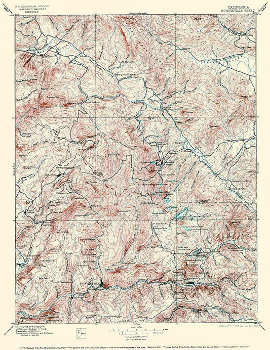 Downieville California Quad - USGS 1897 White Modern Wood Framed Art Print with Double Matting by USGS