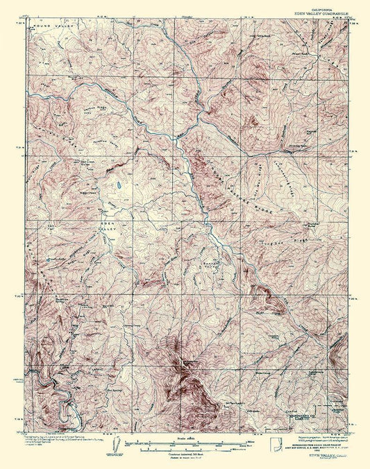 Eden Valley California Quad - USGS 1928 White Modern Wood Framed Art Print with Double Matting by USGS
