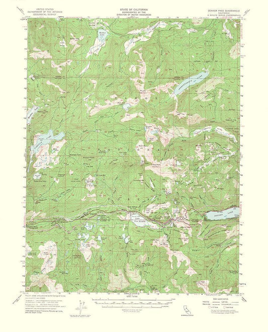 Donner Pass California Quad - USGS 1964 White Modern Wood Framed Art Print with Double Matting by USGS