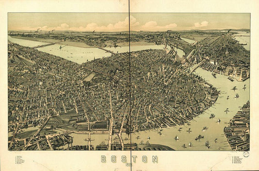 Boston in 1889 A Birds Eye View White Modern Wood Framed Art Print with Double Matting by George Walker and Co