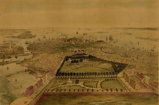 Birds eye view of Boston White Modern Wood Framed Art Print with Double Matting by Sarony and Major