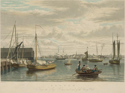 The Port of Boston White Modern Wood Framed Art Print with Double Matting by Vintage Places