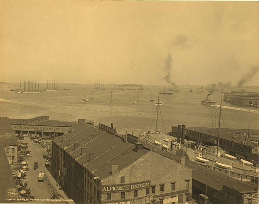 Waterfront Boston White Modern Wood Framed Art Print with Double Matting by Detroit Publishing