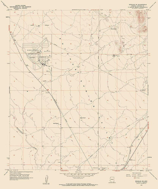 North East Douglas Arizona Quad - USGS 1958 White Modern Wood Framed Art Print with Double Matting by USGS