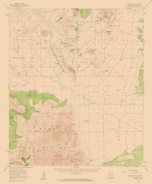 Gleeson Arizona Quad - USGS 1958 White Modern Wood Framed Art Print with Double Matting by USGS