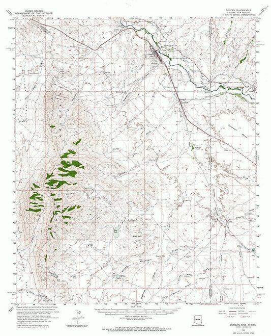 Duncan Arizona Quad - USGS 1960 White Modern Wood Framed Art Print with Double Matting by USGS