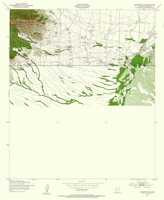 South West Hereford Arizona Quad - USGS 1952 White Modern Wood Framed Art Print with Double Matting by USGS
