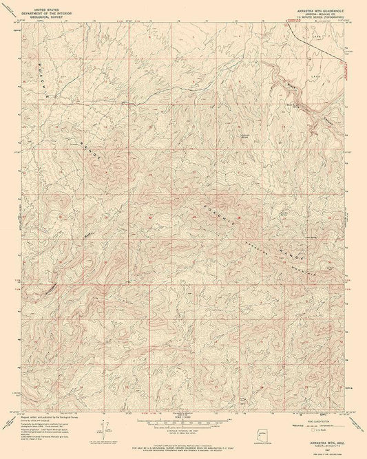 Arrastra Mountains Arizona Quad - USGS 1967 White Modern Wood Framed Art Print with Double Matting by USGS