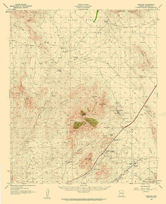 Dragoon Arizona Quad - USGS 1958 White Modern Wood Framed Art Print with Double Matting by USGS