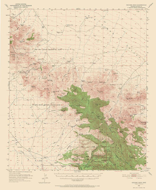 Cochise Head Arizona Quad - USGS 1950 White Modern Wood Framed Art Print with Double Matting by USGS