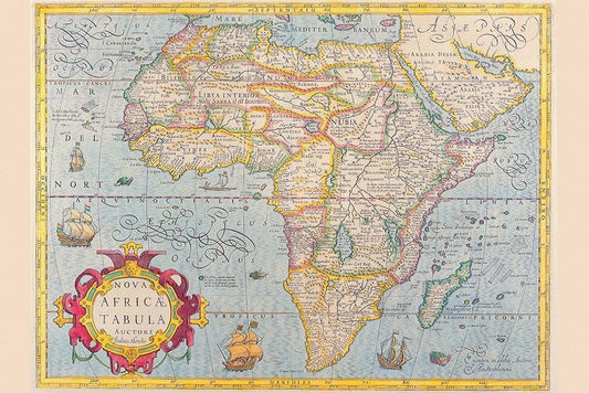 Africa White Modern Wood Framed Art Print with Double Matting by Hondius, Jodocus