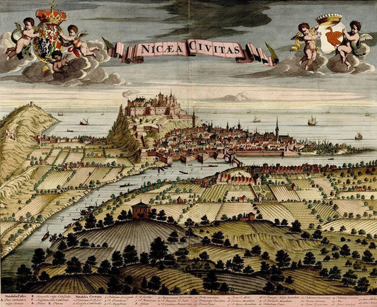 Fortifications at Nice France 1700 White Modern Wood Framed Art Print with Double Matting by Beeck, Anna