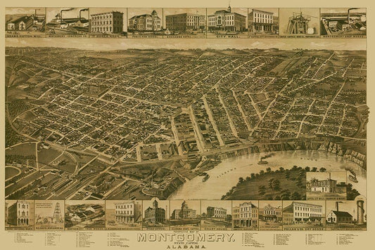 Montgomery Alabama - Wellge 1887 White Modern Wood Framed Art Print with Double Matting by Wellge