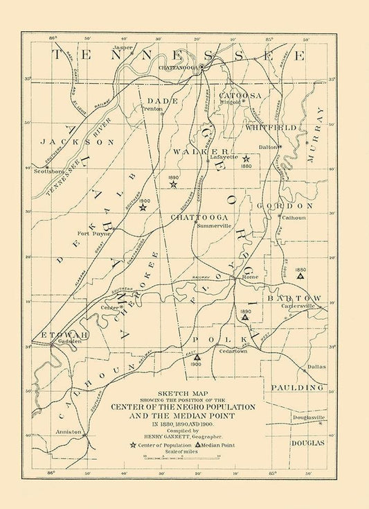 Alabama, Tennessee, Georgia Negro Population 1903 White Modern Wood Framed Art Print with Double Matting by US Census