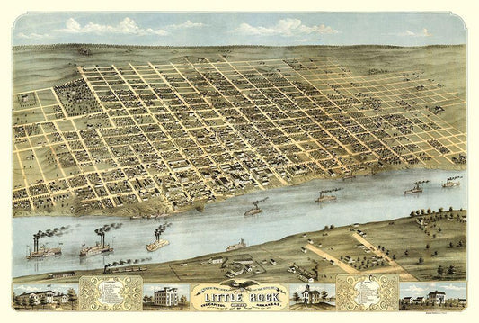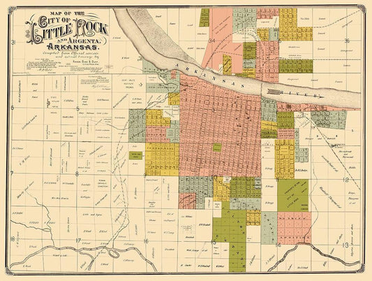 Little Rock Arkansas Landowner - Rickon 1888 White Modern Wood Framed Art Print with Double Matting by Rickon