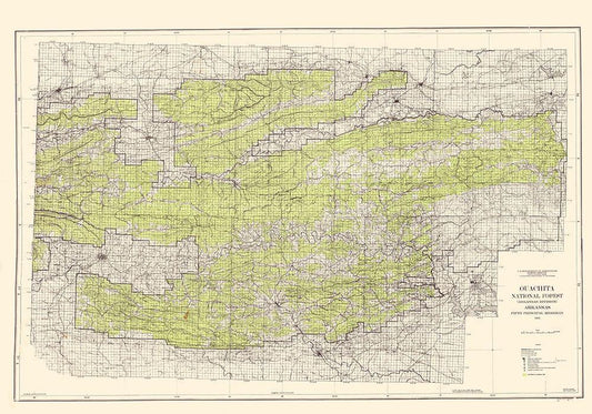 Ouachita National Forest Arkansas - USGS 1945 White Modern Wood Framed Art Print with Double Matting by USGS