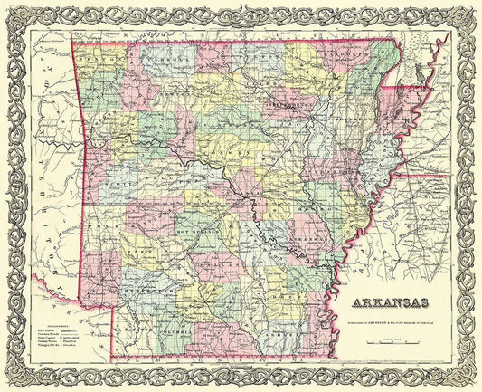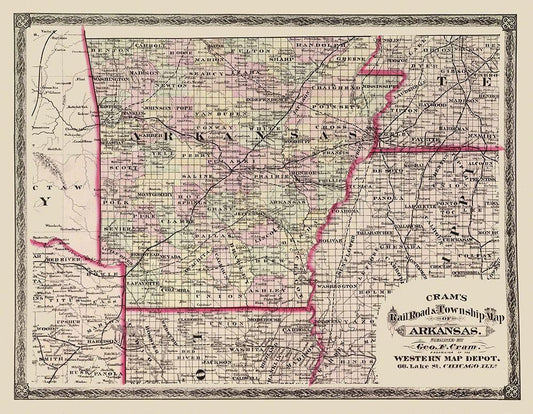Arkansas - Cram 1875 White Modern Wood Framed Art Print with Double Matting by Cram