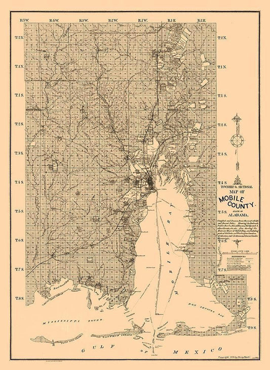 Mobile County Alabama - Fonde 1895 White Modern Wood Framed Art Print with Double Matting by Fonde