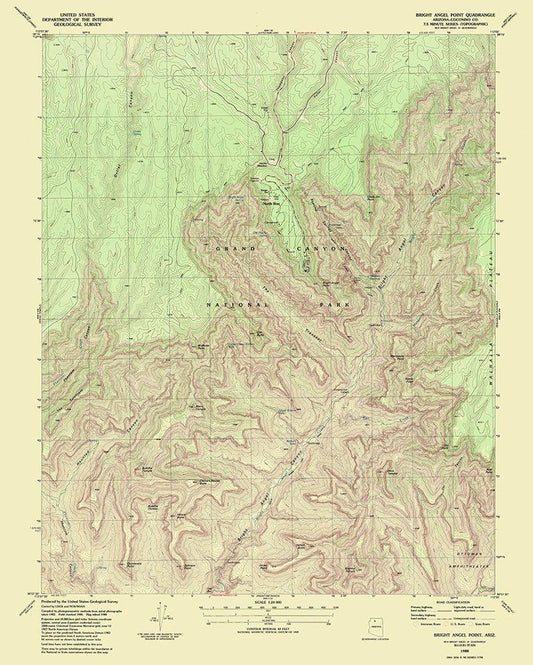 Bright Angel Point Arizona Quad - USGS 1988 White Modern Wood Framed Art Print with Double Matting by USGS