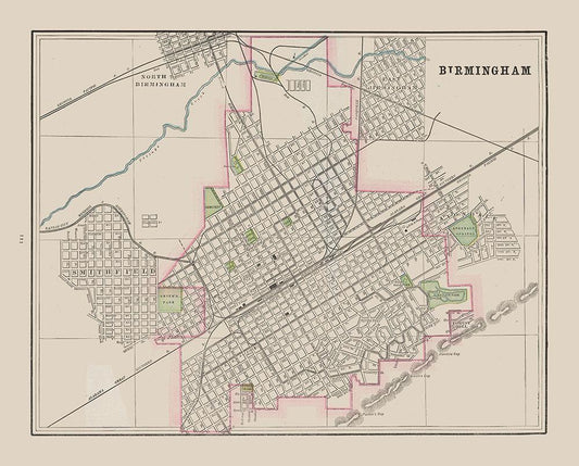 Birmingham Alabama - Cram 1892 White Modern Wood Framed Art Print with Double Matting by Cram