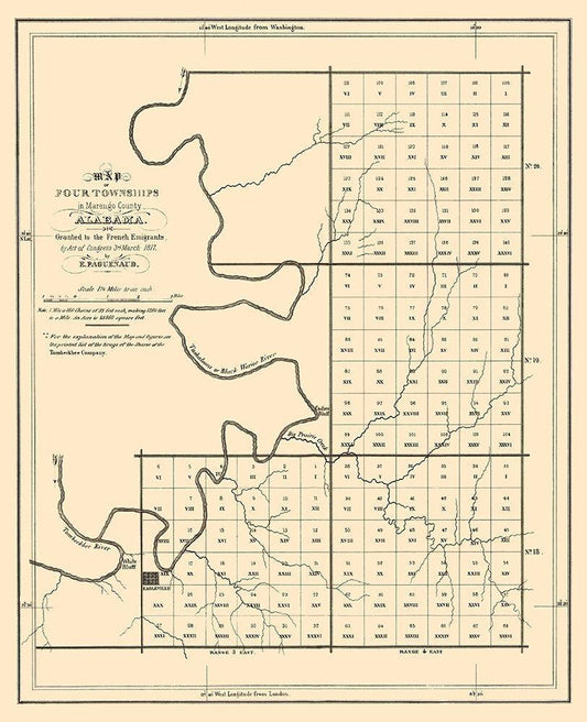 Marengo Alabama Townships - Paguenaud 1817 White Modern Wood Framed Art Print with Double Matting by Paguenaud
