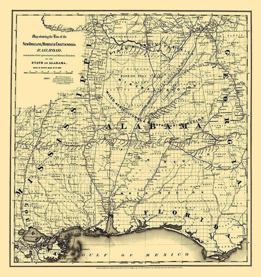 New Orleans, Mobile, Chattanooga Railroad 1867 White Modern Wood Framed Art Print with Double Matting by Colton