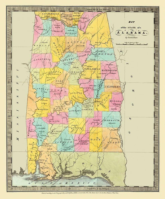 Alabama - Burr 1835 White Modern Wood Framed Art Print with Double Matting by Burr