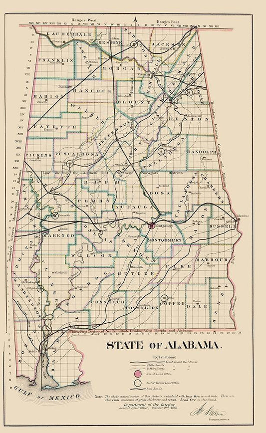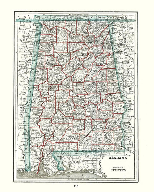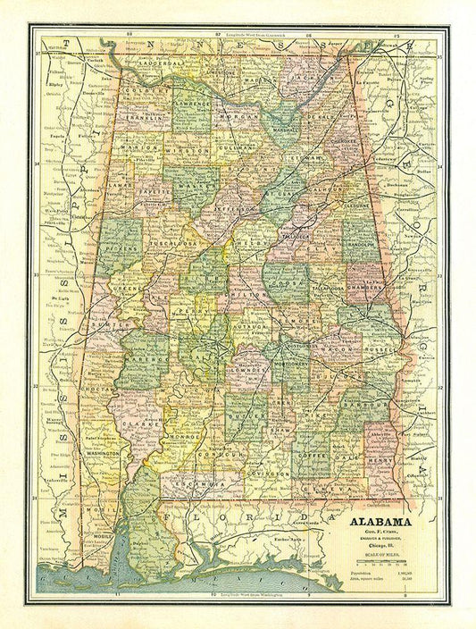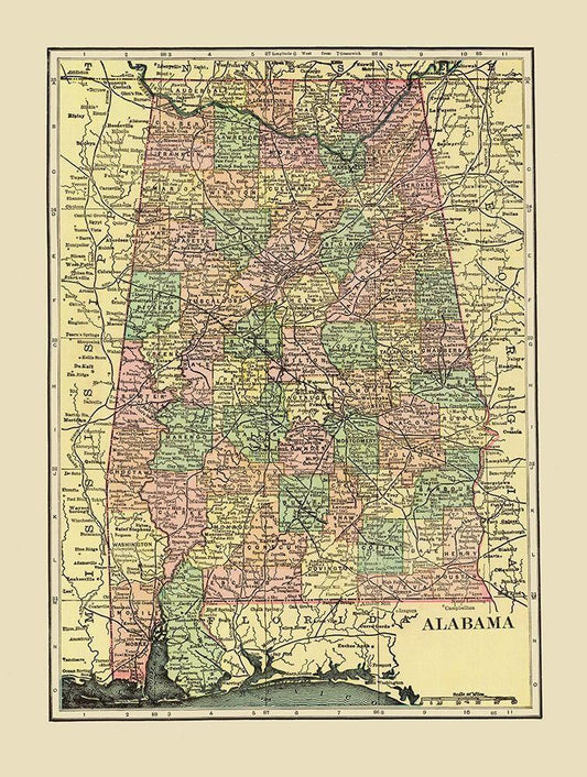 Alabama - Cram 1886 White Modern Wood Framed Art Print with Double Matting by Cram