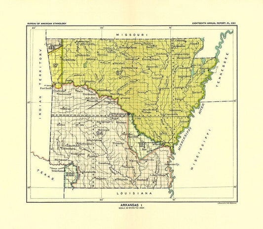 Arkansas Indian Land Cession - Hoen 1896 White Modern Wood Framed Art Print with Double Matting by Hoen
