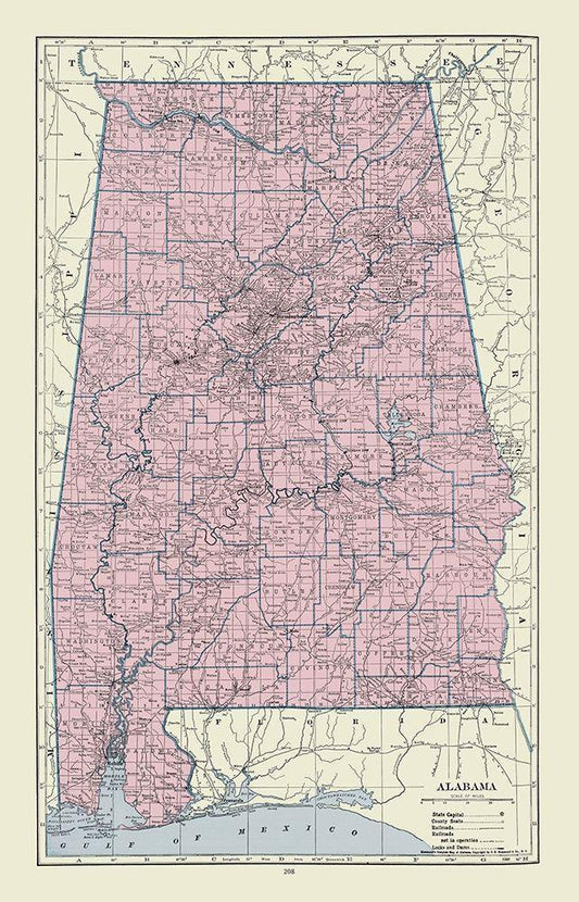 Alabama - Cram 1909 White Modern Wood Framed Art Print with Double Matting by Cram