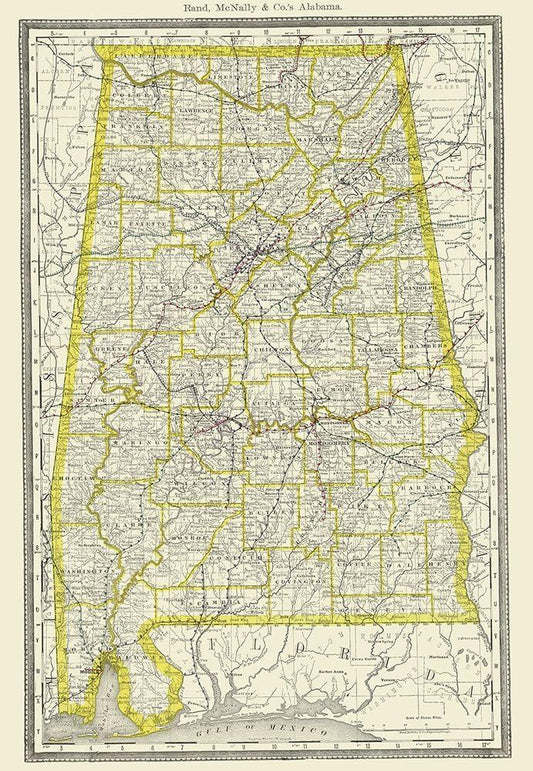 Alabama - Rand McNally 1890 White Modern Wood Framed Art Print with Double Matting by Rand McNally