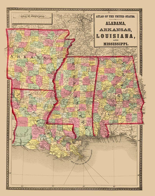 Alabama, Arkansas, Louisiana, Mississippi 1873 White Modern Wood Framed Art Print with Double Matting by Stedman