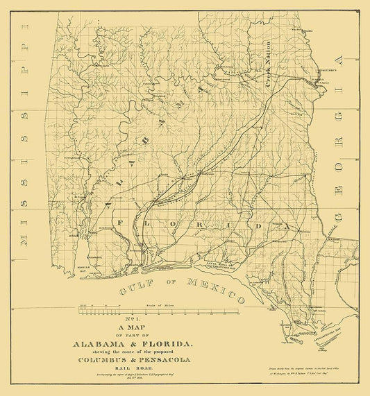 Columbus and Pensacola Railroad 1836 White Modern Wood Framed Art Print with Double Matting by General Land Office