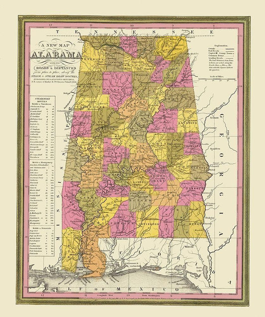 Alabama - Mitchell 1846 White Modern Wood Framed Art Print with Double Matting by Mitchell