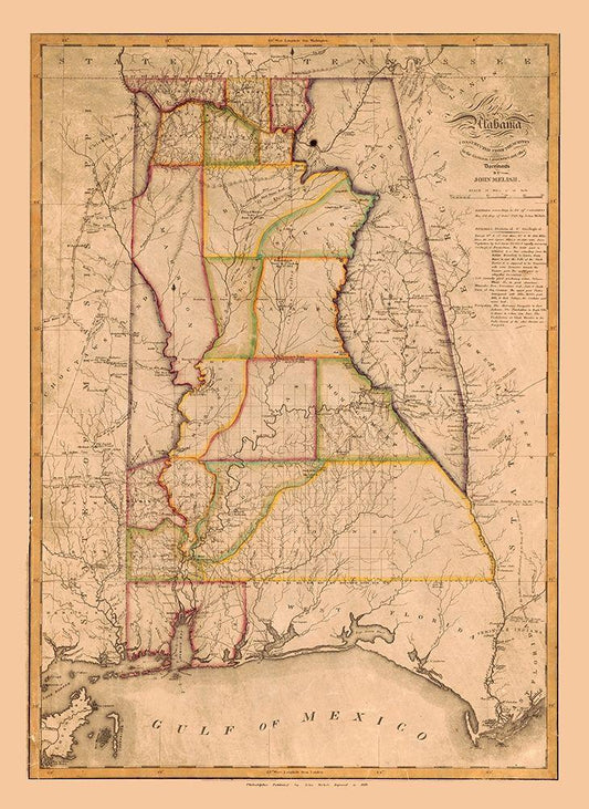 Alabama - Melish 1819 White Modern Wood Framed Art Print with Double Matting by Melish