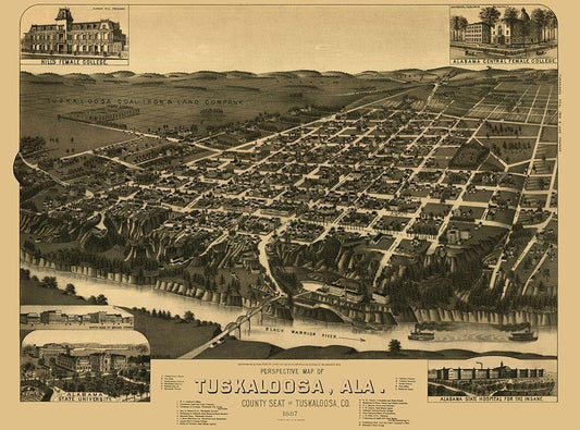 Tuskaloosa Alabama - Wellge 1887 White Modern Wood Framed Art Print with Double Matting by Wellge