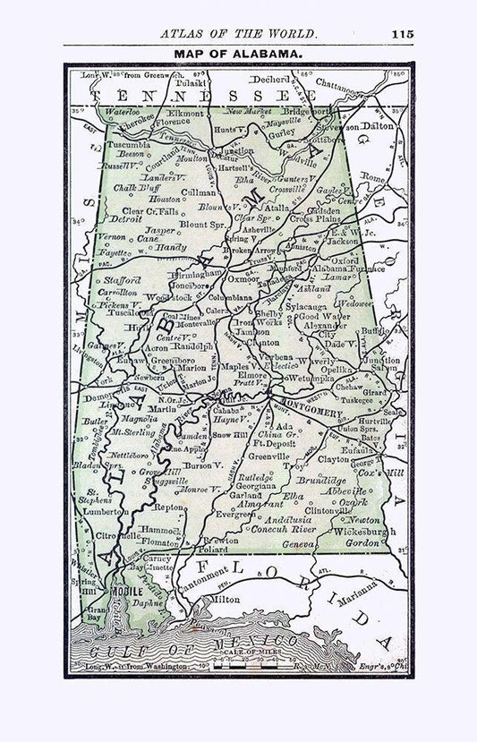 Alabama - Hoen 1896 White Modern Wood Framed Art Print with Double Matting by Hoen