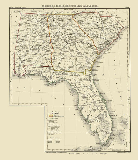 Alabama, Georgia, South Carolina, Florida 1854 White Modern Wood Framed Art Print with Double Matting by Kraatz