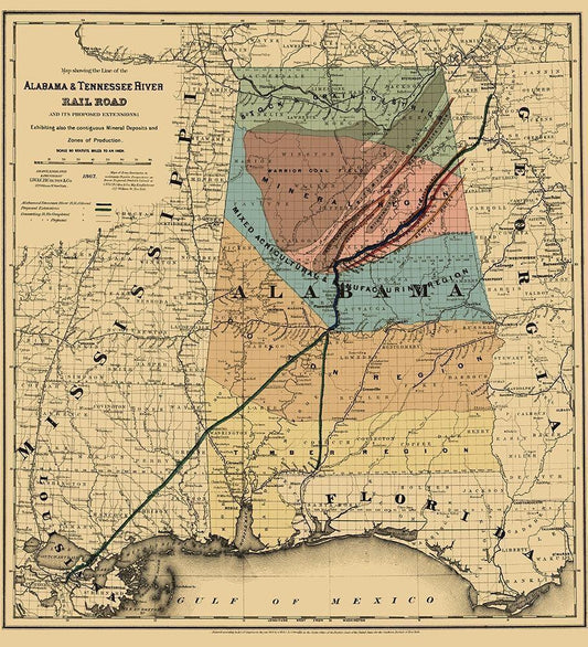 Alabama and Tennessee River Railroad - Colton 1867 White Modern Wood Framed Art Print with Double Matting by Colton