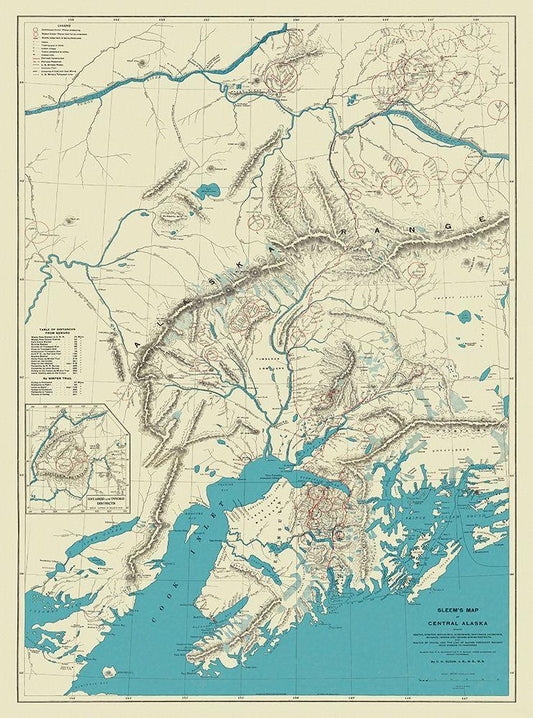 Alaska Central Portion - Sleem 1910 White Modern Wood Framed Art Print with Double Matting by Sleem