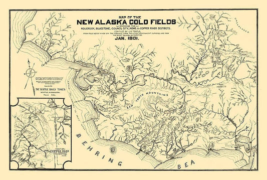 New Alaska Gold Fields - Temple 1901 White Modern Wood Framed Art Print with Double Matting by Temple